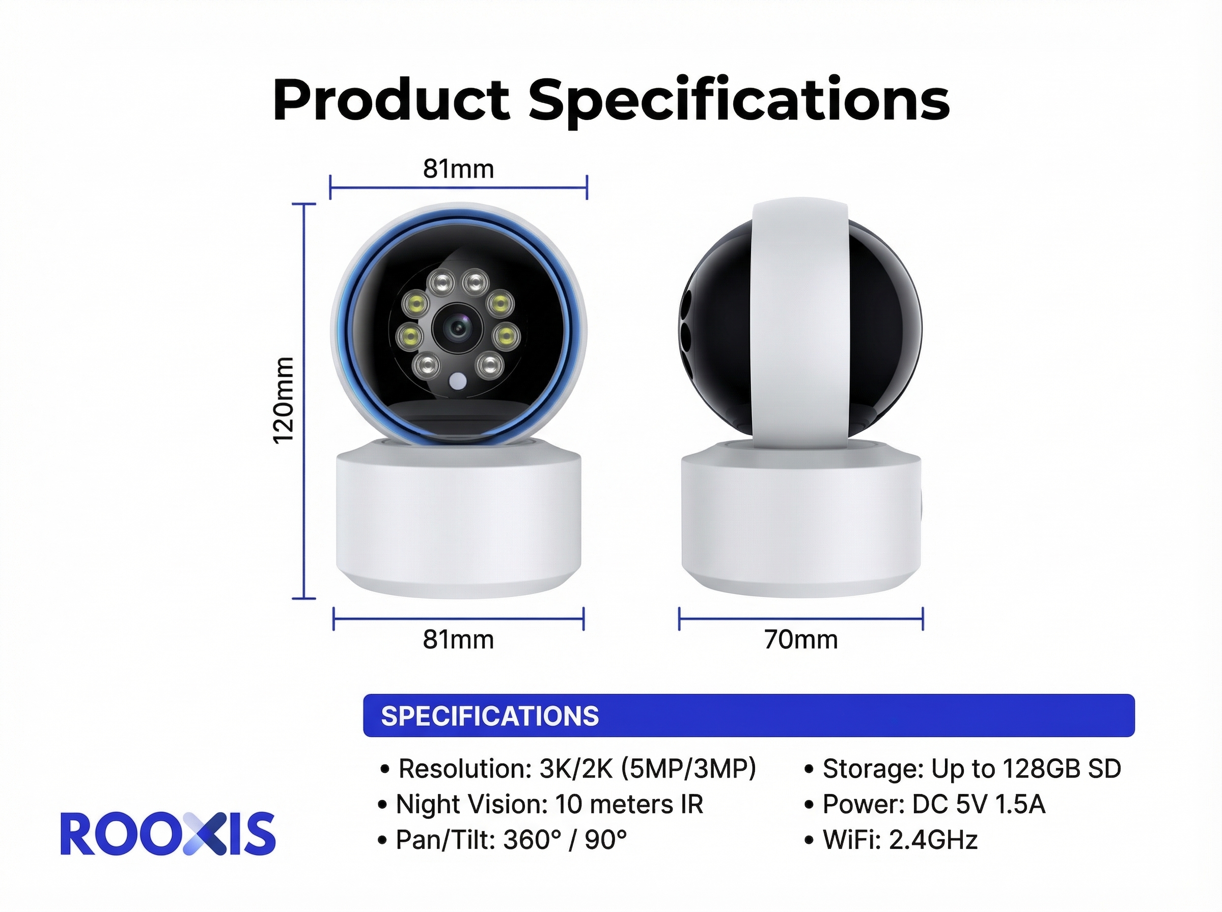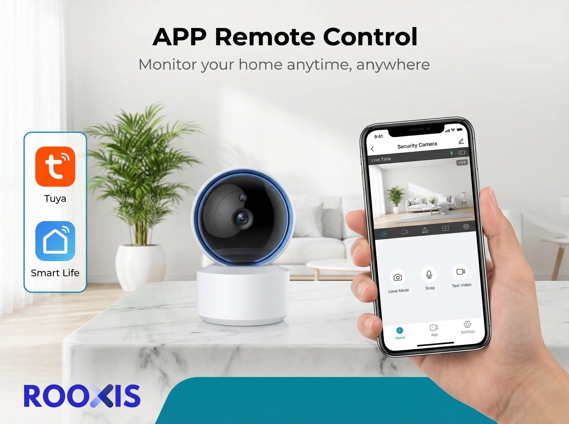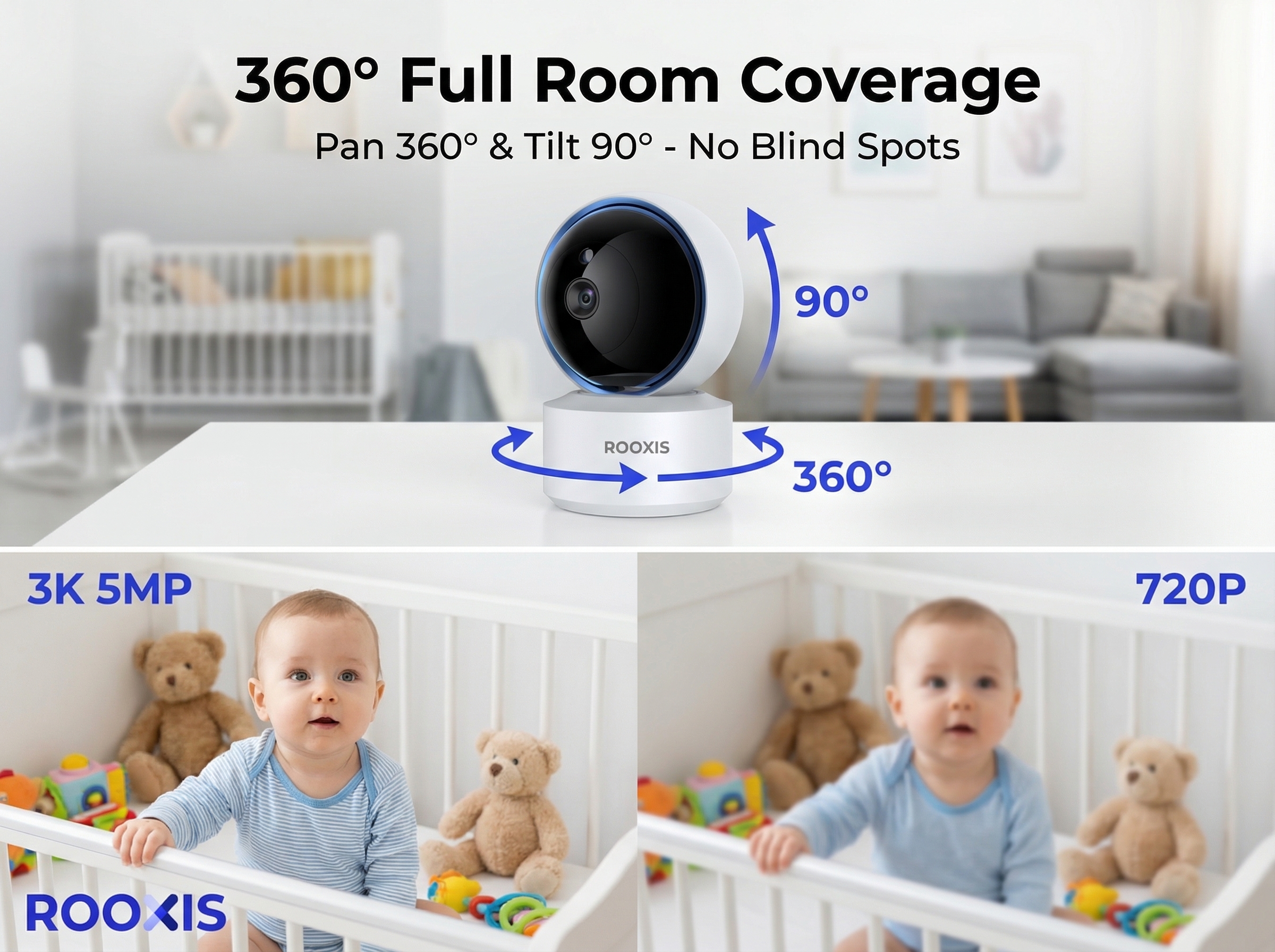Keep an eye on what matters most with the ROOXIS Indoor WiFi Camera. Whether you are monitoring sleeping babies, checking on pets, or securing your home while away, this versatile PTZ camera delivers peace of mind in stunning HD. Choose 2K (3MP) for everyday monitoring or 4K (5MP) for razor-sharp detail — both feature full 360° coverage, AI-powered detection, two-way talk, and free Smart Life app control.