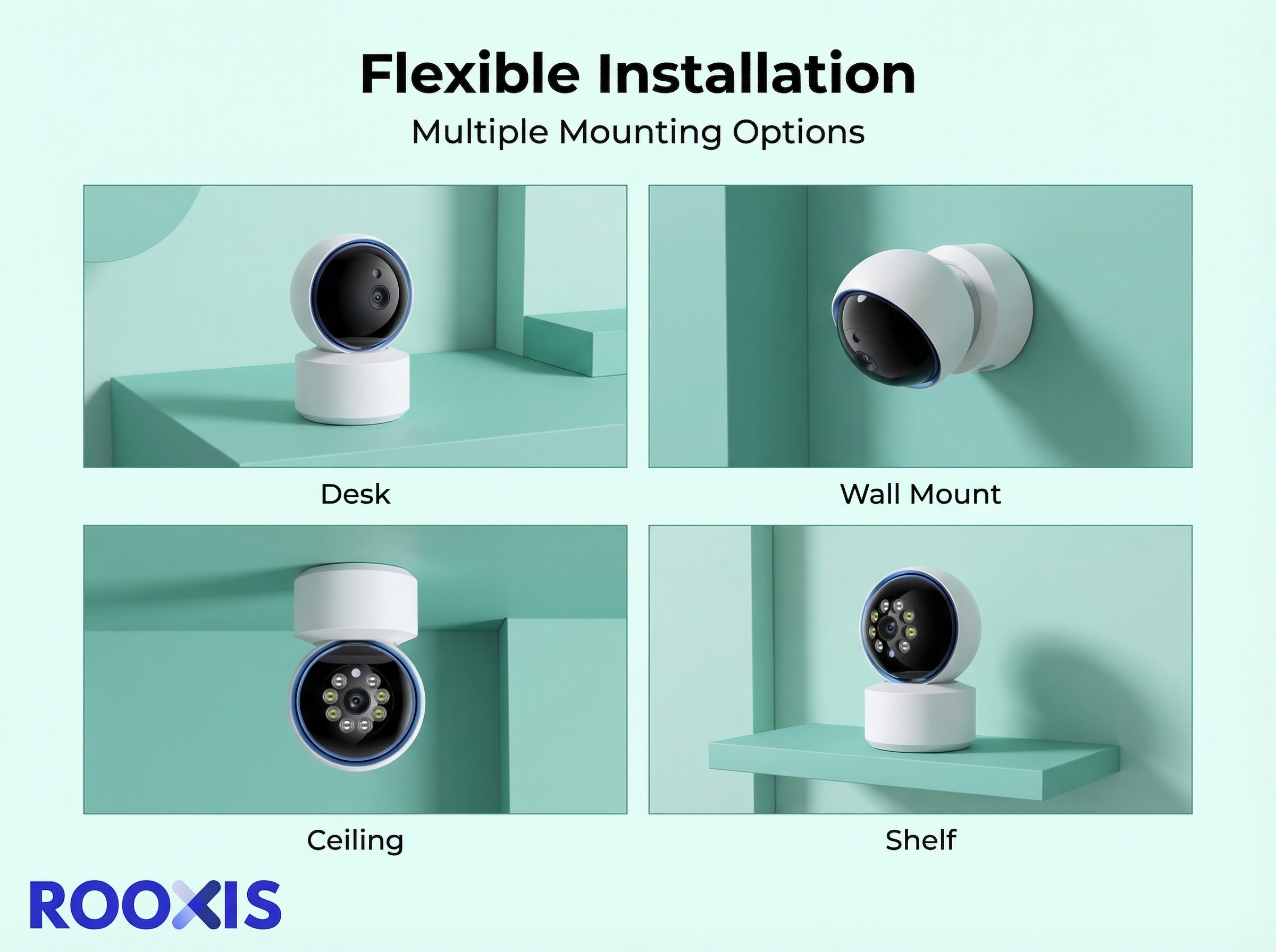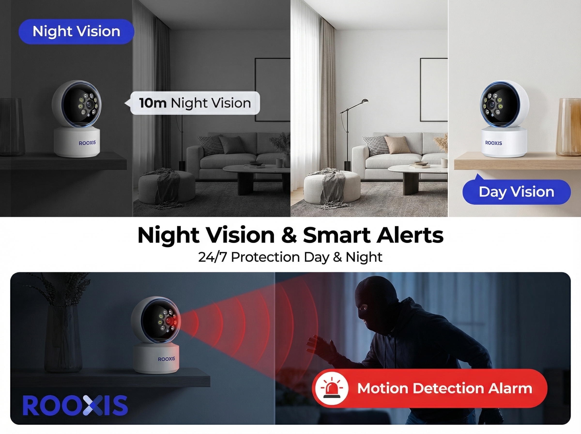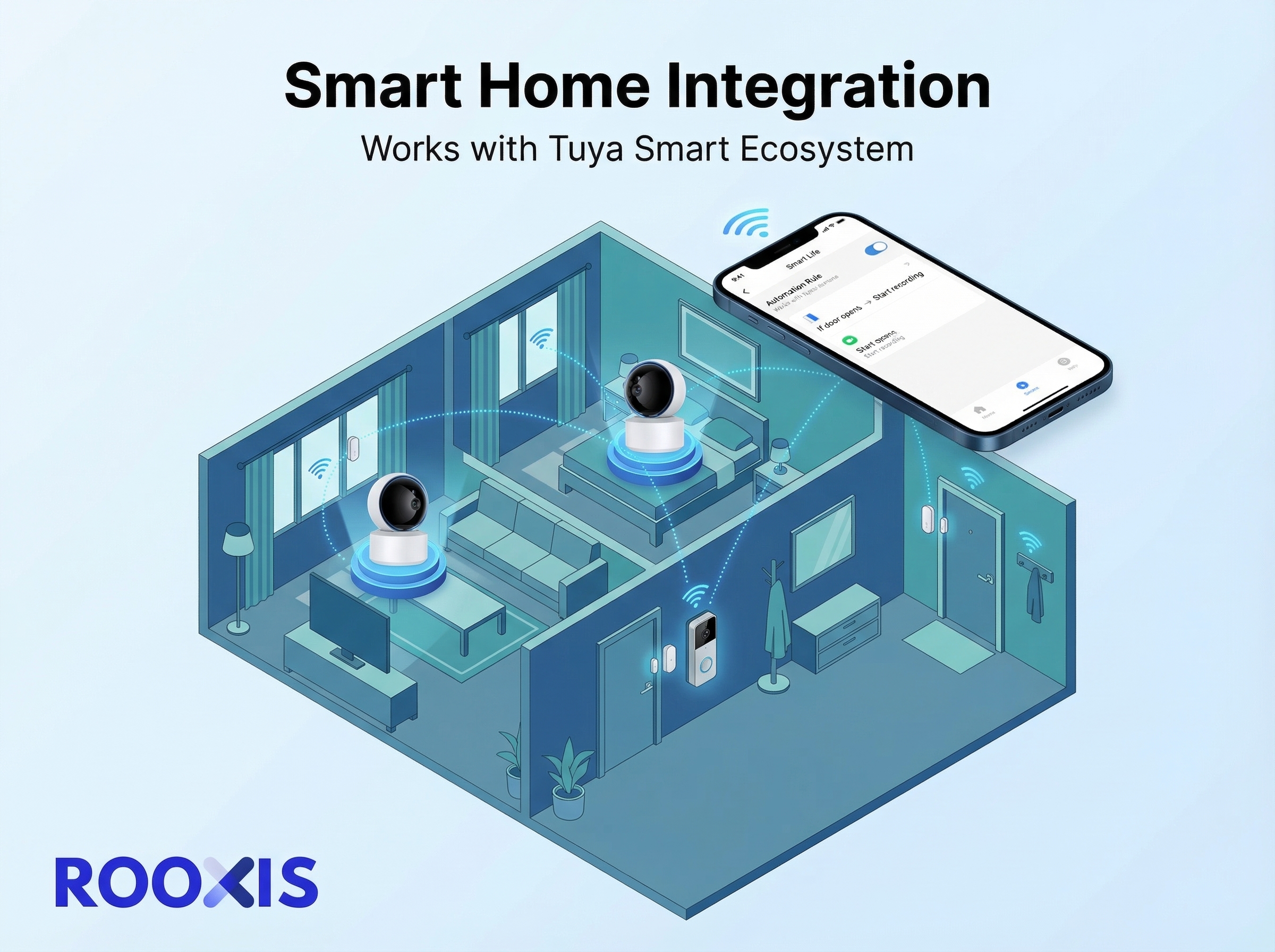Keep an eye on what matters most with the ROOXIS Indoor WiFi Camera. Whether you are monitoring sleeping babies, checking on pets, or securing your home while away, this versatile PTZ camera delivers peace of mind in stunning HD. Choose 2K (3MP) for everyday monitoring or 4K (5MP) for razor-sharp detail — both feature full 360° coverage, AI-powered detection, two-way talk, and free Smart Life app control.