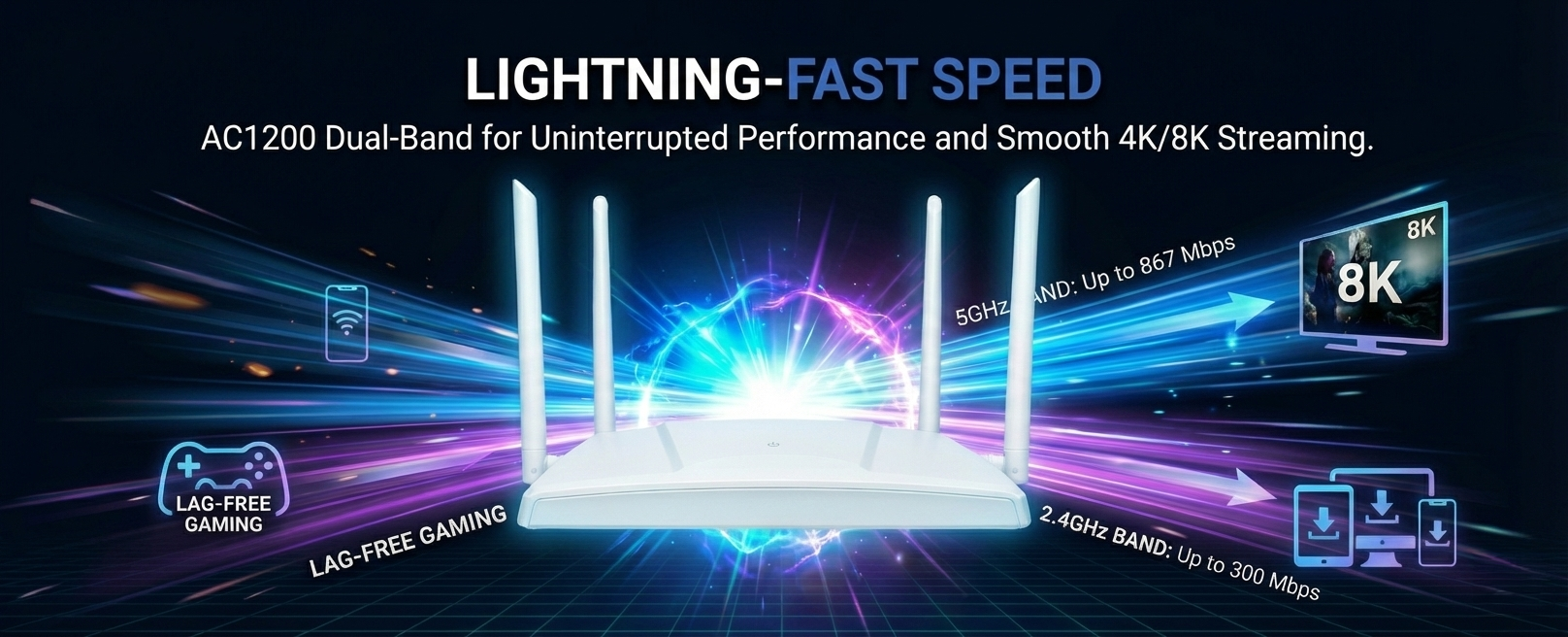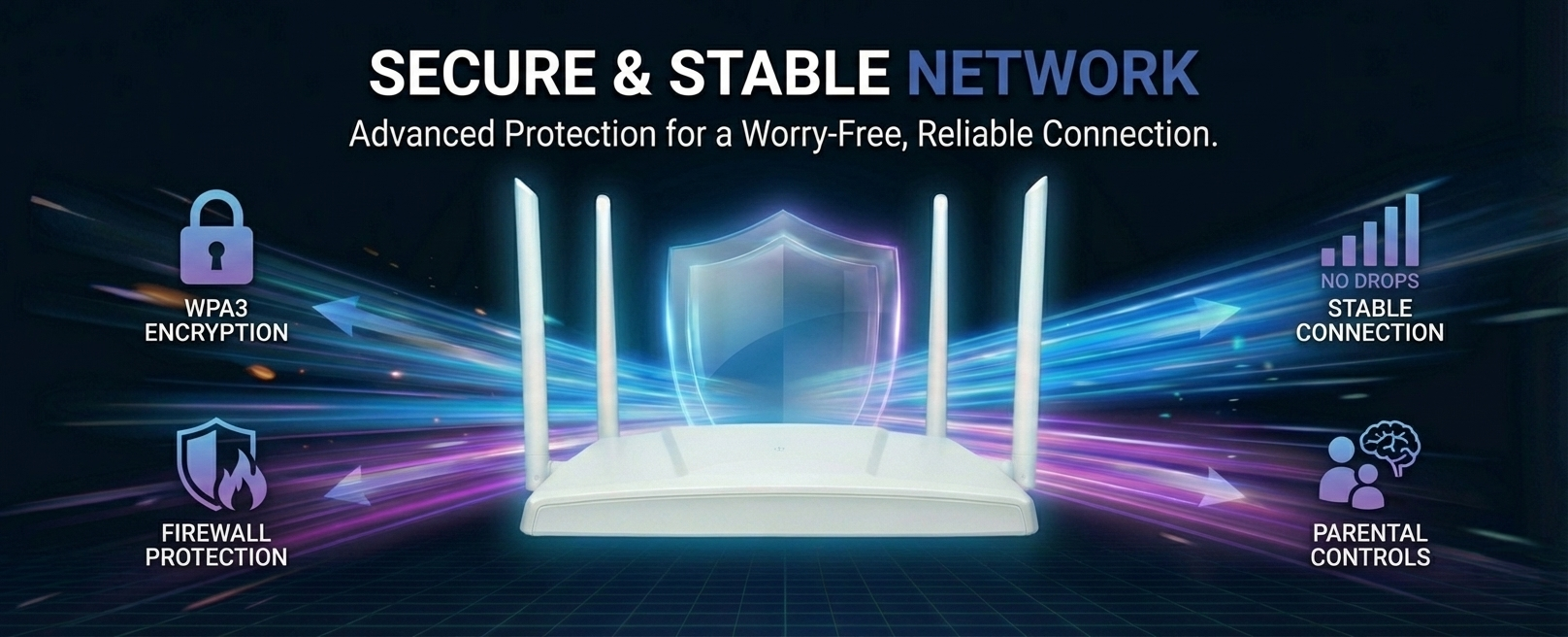 Our dual-band router and extender combo ensures seamless coverage throughout your home.