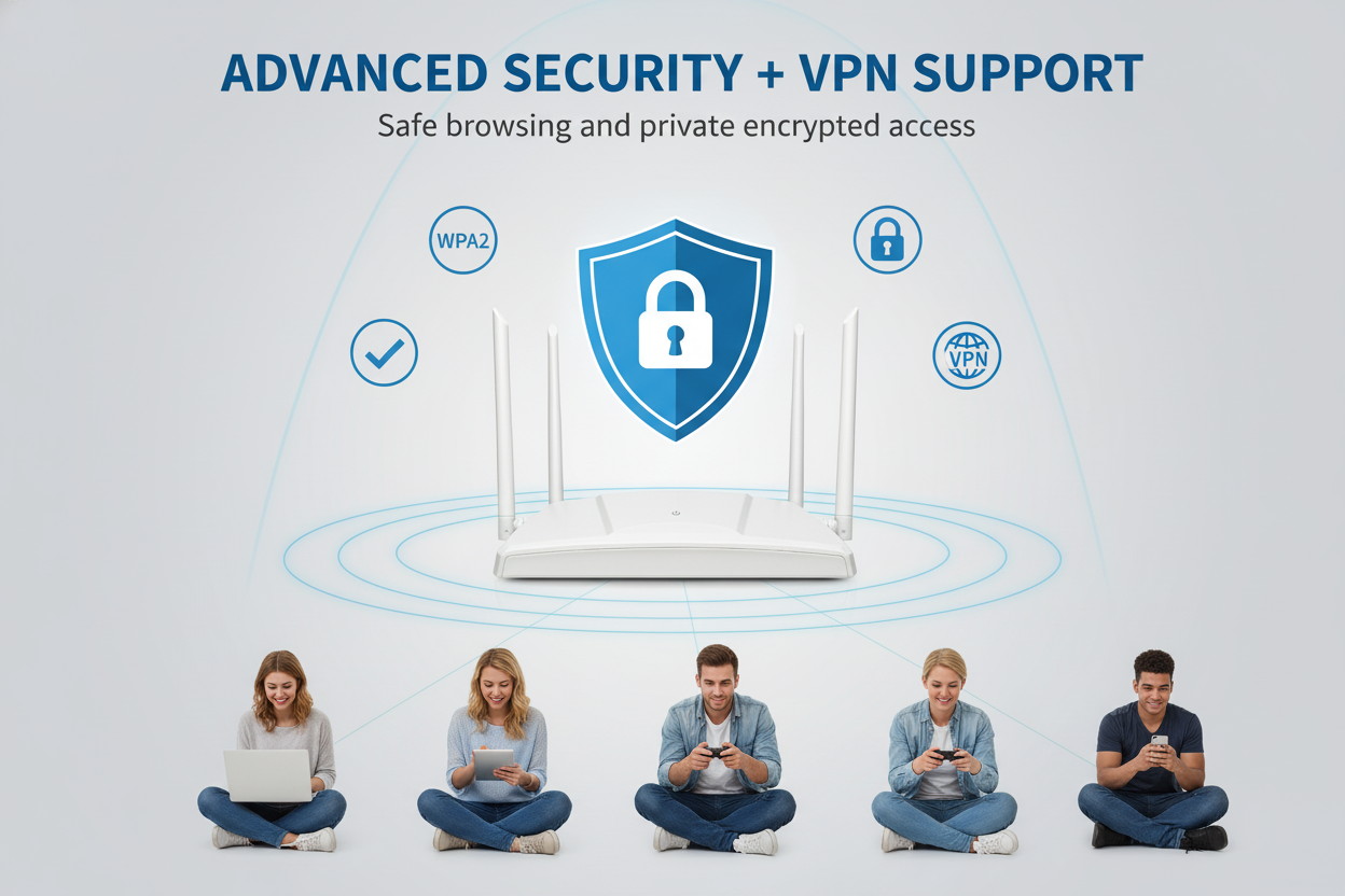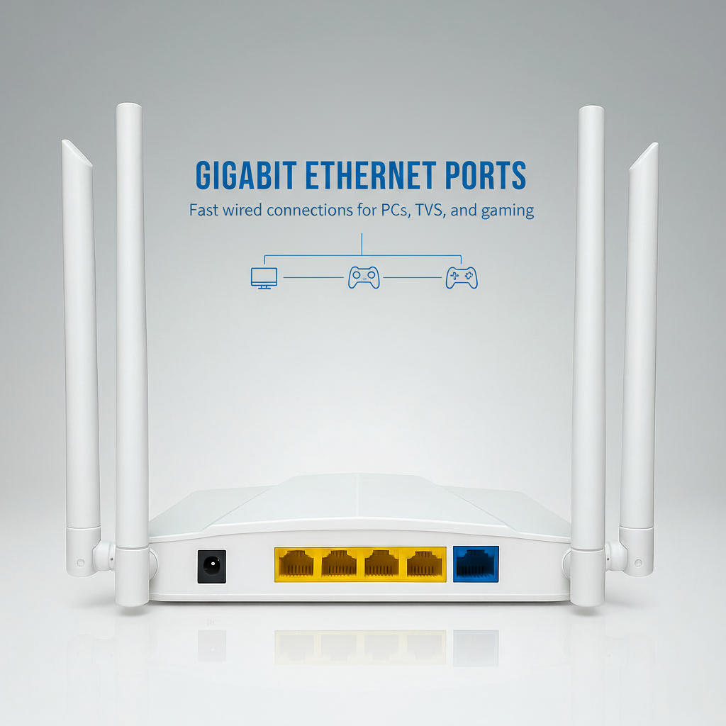 Stream 4K, play online games, and handle video calls without interruption. With 4 x Gigabit Ethernet ports and high-speed 5GHz Wi-Fi, Rooxis delivers ultra-fast connections.