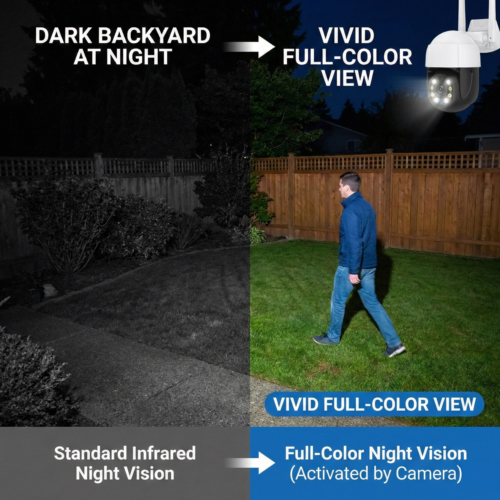 Protect your home with the ROOXIS 3K Outdoor Security Camera. Featuring ultra-clear video, 355° pan-and-tilt coverage, AI-powered human detection to reduce false alerts, color night vision up to 20 meters, two-way audio, and IP66 weatherproofing. Compatible with Alexa for voice control.